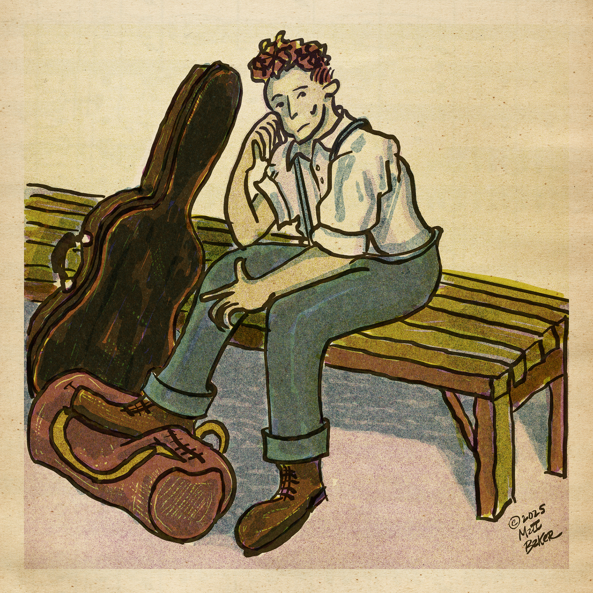 I started this drawing whilst waiting at an airport coming back from a holiday last January. This poor fella's bus didn't show, and he's not looking forward to getting the brunt of Sal's anger whenever he does get to wherever he's going.