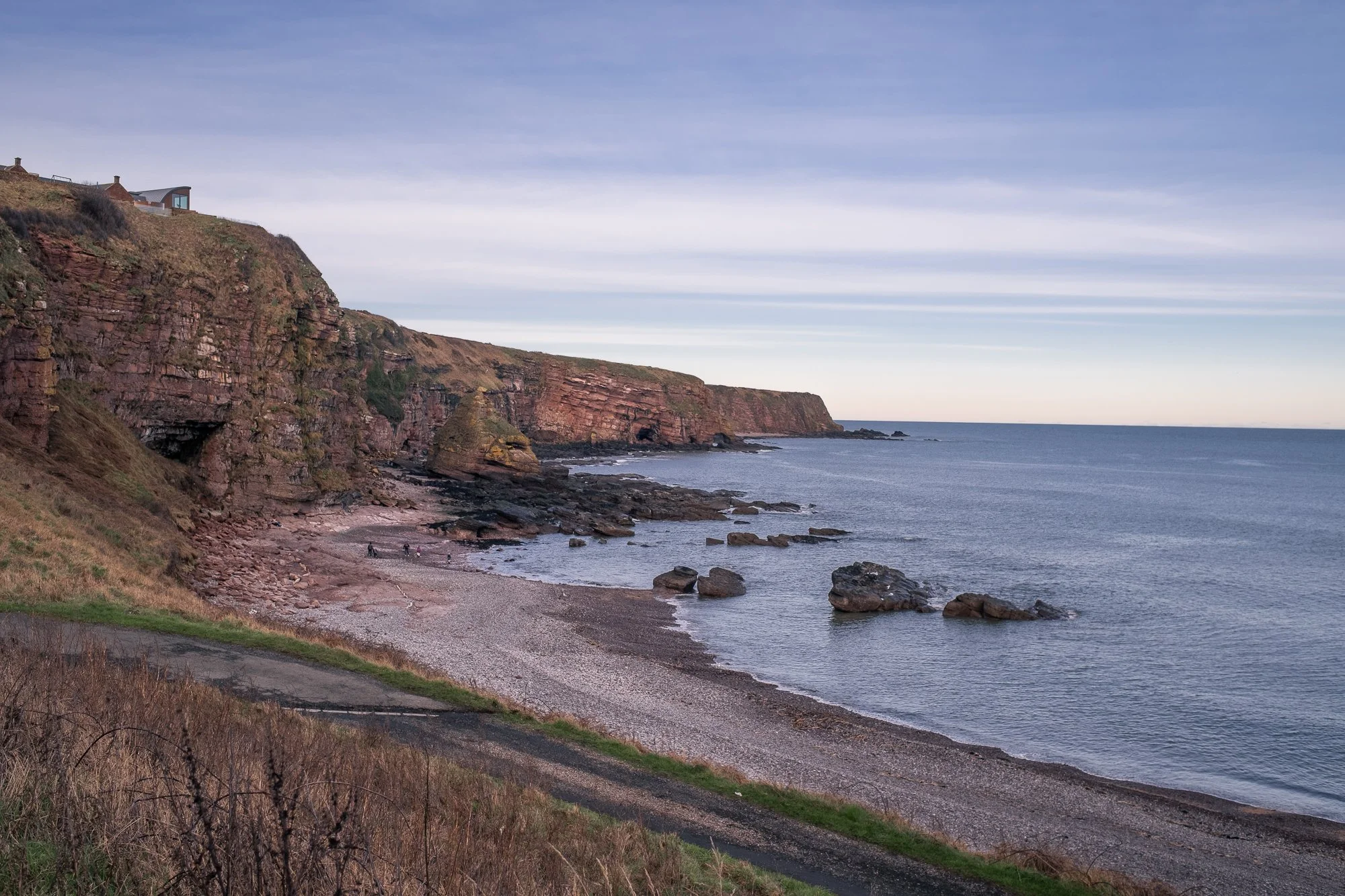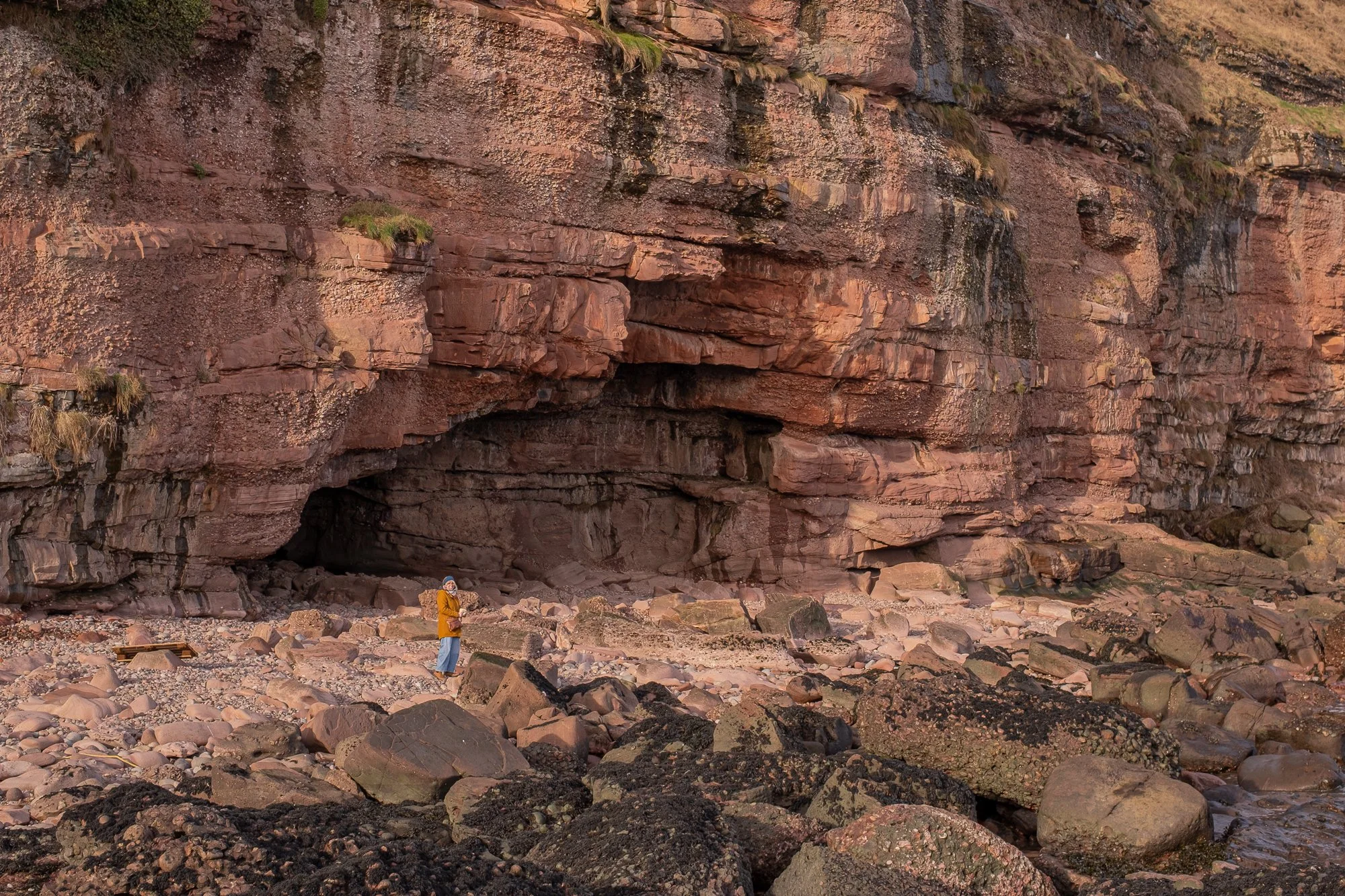 My wife Jo and I went out to Auchmithie Beach on Valentine’s Day. It’s been the rainiest winter in a decade here in Angus and we haven’t seen the sun in four weeks. So when the sun came in the morning of the 14th, I grabbed the camera and we headed to Auchmithie Beach, a rocky old fishing harbour.