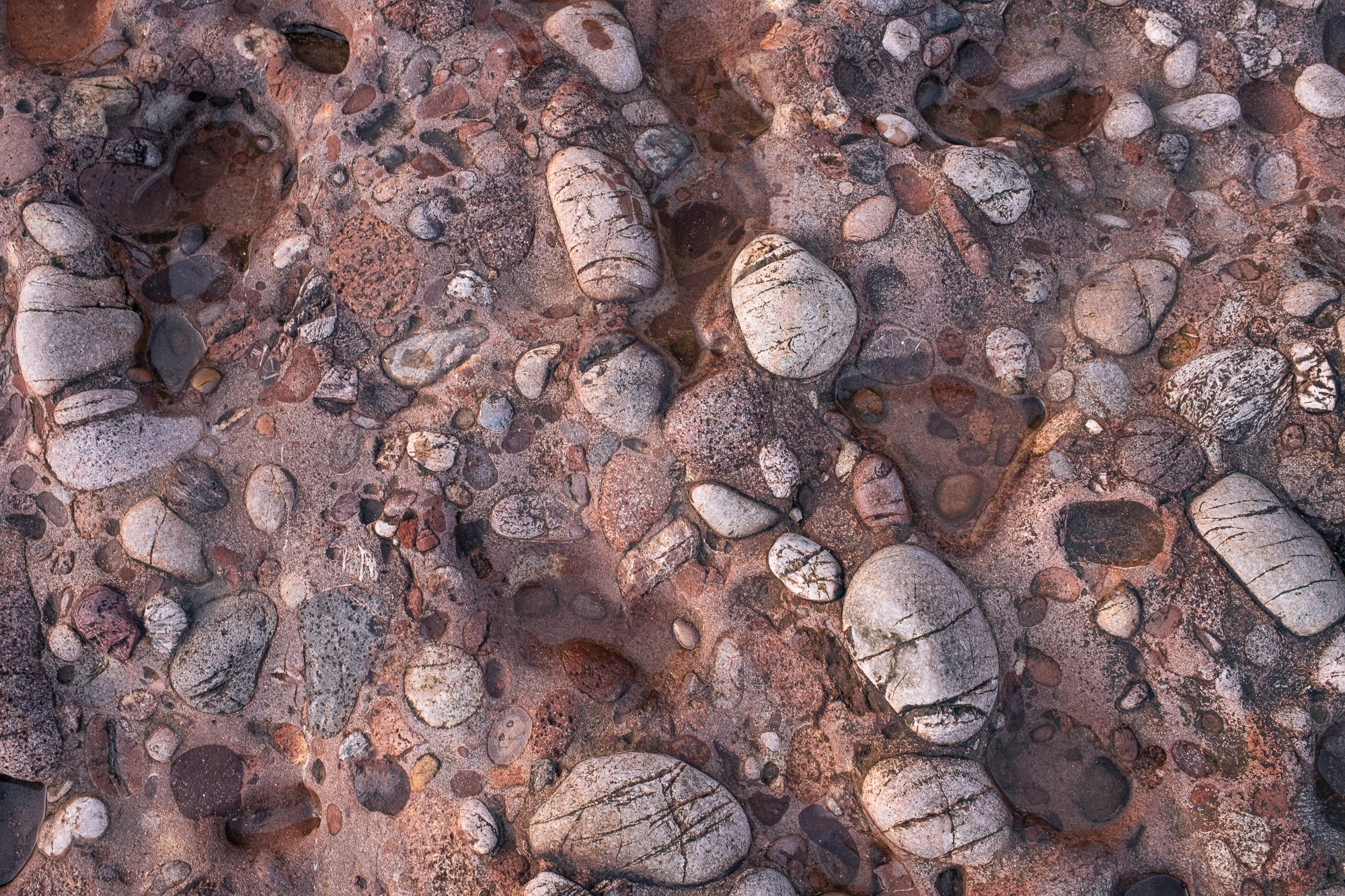 Conglomerate is basically nature’s concrete. Long ago, rivers or beaches piled up rounded pebbles and sand. Over millions of years, pressure squeezed them together and minerals acted like glue, turning the pile into solid rock.
